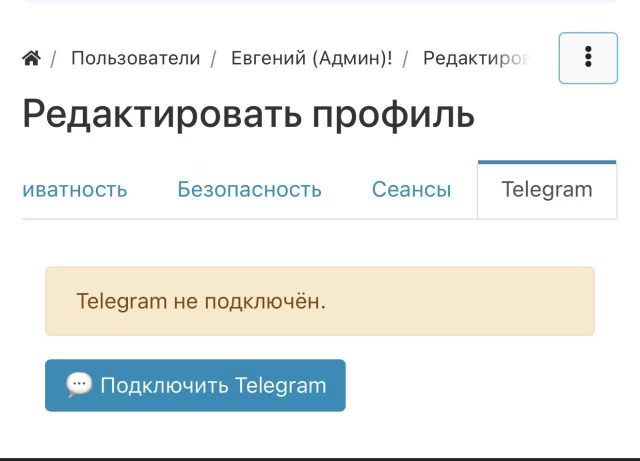 Как подключить бот? Перейдите в настройки своей страницы и выберите вкладку Telegram.